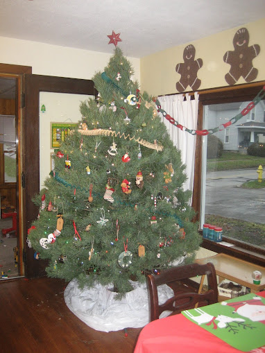 In years past, our Christmas tree has been a small 3 ft "fake" tree that I was given in High School by my mother. As kids my brother and I got a new Christmas ornament each year from our Grandmother. By the time I got into High School my mom thought it best if we had our own little tree for our rooms since we couldn't fit all of the ornaments on our family tree. After that we got to pick one from our collection for the family tree and the rest we used on our own little tree. That tree and those ornaments went to college with me. Decorating my dorm rooms and bringing me joy.